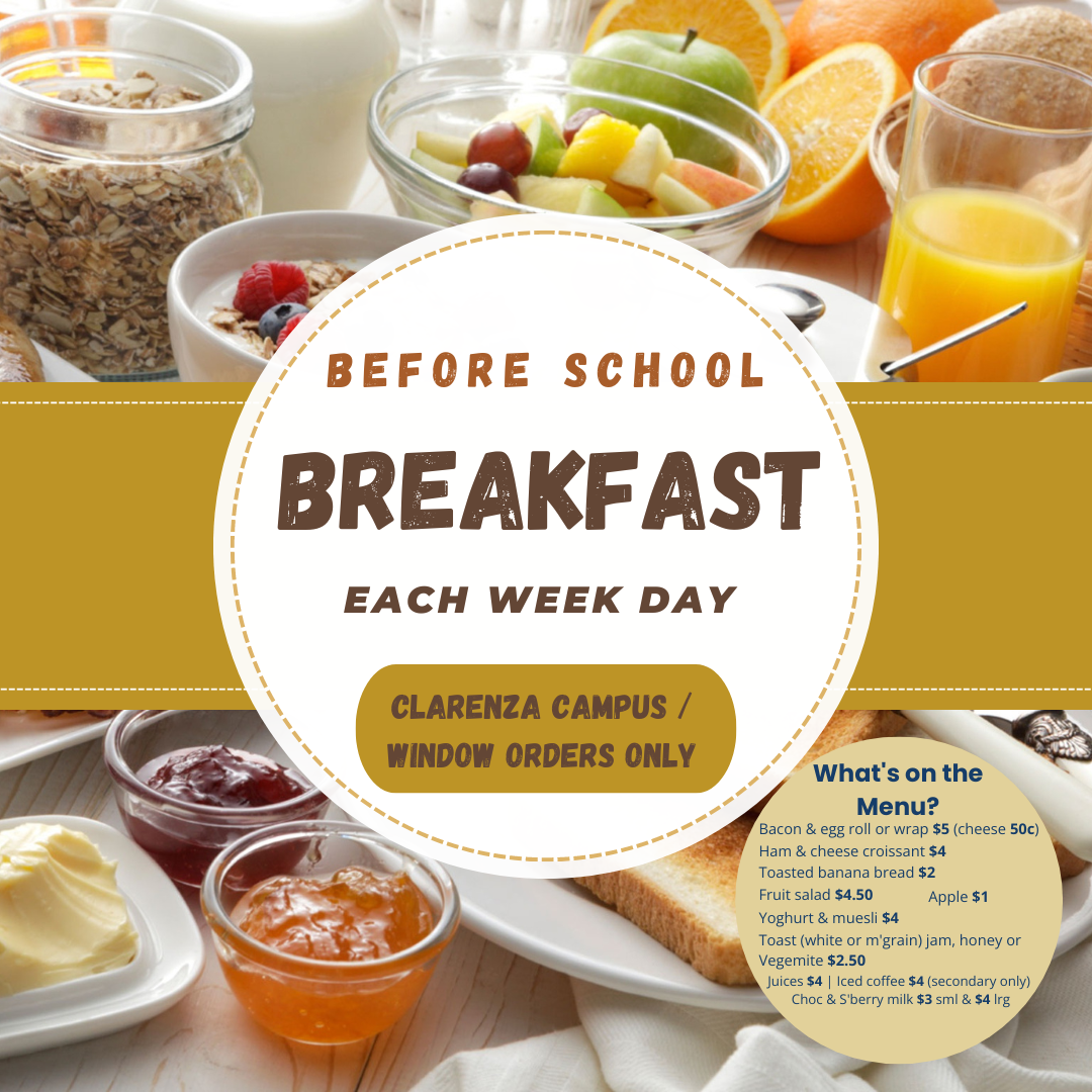 Cafe 74 is now open each day through school term between B and C blocks at the Clarenza Campus.
